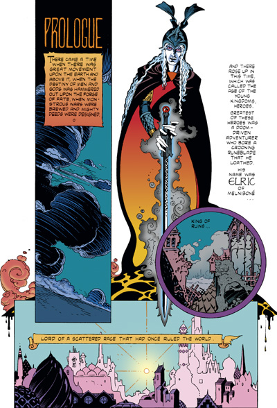 There was a time when great movement fell upon the earth and above it, when the destiny of men and gods was hammered out upon the forge of fate, when monstrous wars were brewed and mighty deeds were designed. Greatest of these heroes was a doom-driven adventurer who bore a runeblade that he loathed. His name was Elric of Melniboné, king of ruins, and lord of a scattered race that once ruled the world. Legendary artist P. Craig Russell adapts Michael Moorcock's climactic Elric novel -- the grand story of the final battle between Law and Chaos -- to the comics format. This is Russell's finest work yet, and the greatest Elric epic of them all, combining the best elements of horror, sword, and sorcery into one amazingly powerful story.
