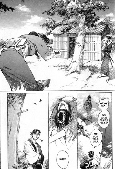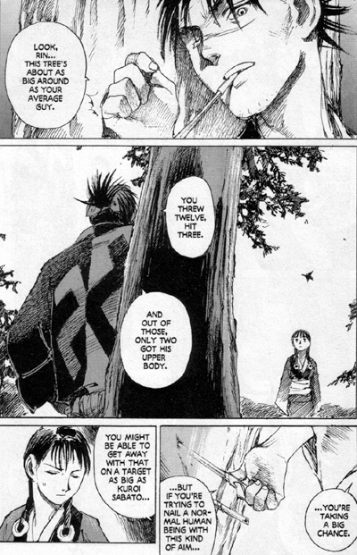Manji, the immortal samurai, is condemned to a life of combat until he slays a thousand evil men. He works as bodyguard for Rin, a young woman who seeks to avenge her father's murder at the hands of the deadly Kagehisa Anotsu. But even with Manji's instruction, will Rin ever be able to stand against such a powerful and ruthless adversary? And in her consuming quest for vengeance, does she risk becoming like him?