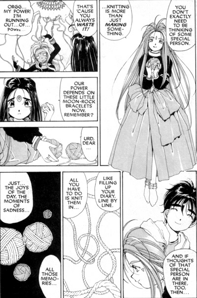 In this techno-fied age of cyber-this and micro-that, it seems you can't do your job unless you're plugged in-and Earth-bound goddesses are no exception! The goddesses' computerized life-support system was meant to streamline things at Goddess Central, but when it goes on the fritz after their knock-down, drag-out war with the Lord of Terror, the result is nothing but trouble! Urd is regressing into a little girl, Skuld is growing old so fast, and Belldandy is trapped in a system-crash-induced sleep. Can boyfriend Keiichi save the trio before it's too late?