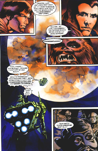 Six years after the Battle of Endor, the fight for freedom rages on. Darth Vader is dead, but a reborn Empire -- under a mysterious new leader -- strikes back at the struggling Rebel Alliance. Massive World Devastators, more powerful and unstoppable than the Death Star, ravage entire planets, while the ruthless heirs of Jabba the Hutt place a monumental price on the heads of Princess Leia and her husband, Han Solo. Along with Lando, Chewbacca, Artoo, Threepio, and other old allies, Han and Leia struggle to protect the future for their unborn child. But their greatest foe may be their closest friend: Luke Skywalker...