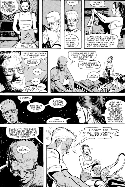 Speechwriter Ron Lithgow returns as Concrete, the title character in one of the most critically acclaimed creator-owned stories in comics history. Trapped in an alien's rock-hard body, Lithgow is an accidental celebrity whose high profile is being courted by a front-page CEO. Though Concrete believes overpopulation to be an important issue, does he want to become the spokesperson for a controversial new population control program? Just when Lithgow thinks that he has an answer, the CEO appears with an offer that he can't refuse. Meanwhile, new fiancé Larry Munro unhappily stumbles over the first downside to engaged bliss. Toss a deadly freeway shooting into the mix, and you've got the makings of Paul Chadwick's most mature Concrete miniseries yet.