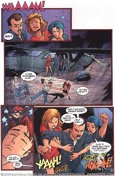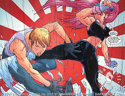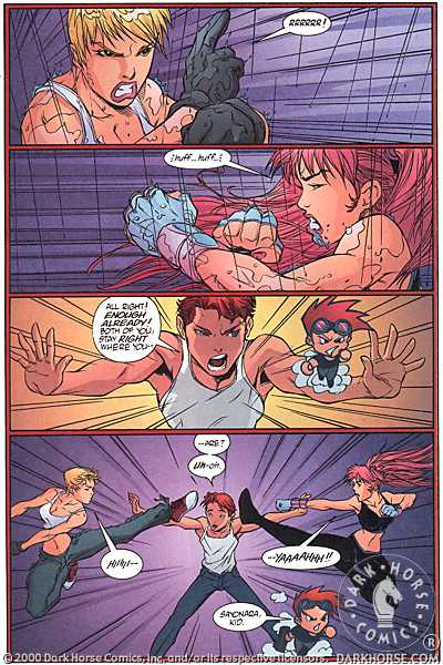 Bombshell cornered?! Out of ammo?! Battered, bruised, and all but defeated?! Merciless SpyGirl hiding somewhere in the shadows, waiting to pounce, and slice Bombshell into cold cuts?! It's all in a days work for these hard-working, curvaceous super-agents. The fast-paced action continues through the demolished streets of hyper-sensory Tokyo. But, if these girls jump this hard just for fun, imagine what'll happen next issue when they start fighting over Alex Fleming, a.k.a. SpyBoy! Then someone's really gonna get killed good!