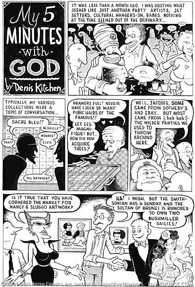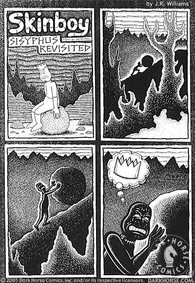 In this second annual anthology of creator-owned coolness, we've roped a few wayward, unpredictable colts, corralled them with some solid but imaginative workhorses, and even had some of those fancy European ponies brought to the Dark Horse ranch for the best ride of the new millennium! Okay, horseplay aside, Matt Wagner visits the Grendel universe with another chapter of the Hunter Rose legacy, Sergio Aragonés rolls out an autobiographical anecdote in his trademark style, Will Eisner tells a tale of fleeting triumph, and young Usagi learns a valuable lesson in a story by Stan Sakai. All the way from France, Angoulême Grand Prize winners Charles Berberian and Philippe Dupuy send their charming and funny Monsieur Jean for your reading pleasure. Jogging in from the outfield, Denis Kitchen provides a hilariously absurd story called "My Five Minutes with God," and J.R. Williams provides his take on a Greek myth with "Skinboy: Sisyphus Revisited." Rounding out the edges we have a pin-up by Hellboy artist Mike Mignola and a cover by the ever-smoking Frank Miller, colored by Eisner Award-winning digital artist Laura DePuy. It's 48 pages of pure genius, and it's coming your way in July, the perfect month for a good read in a shady spot.