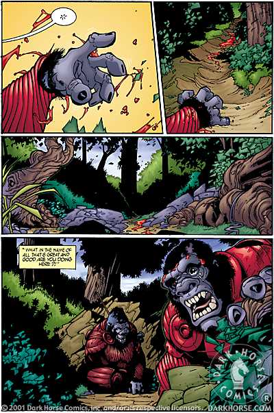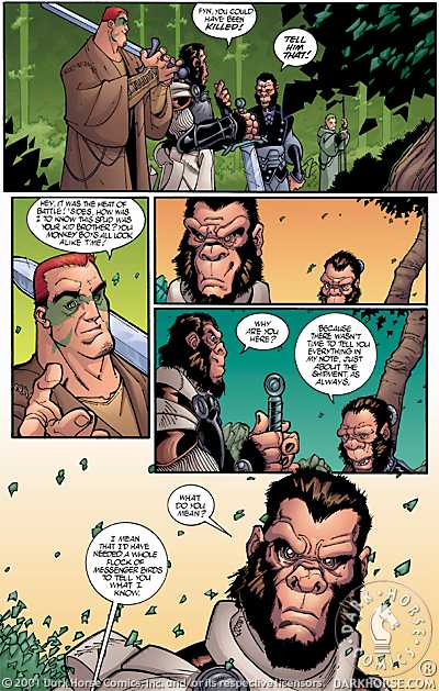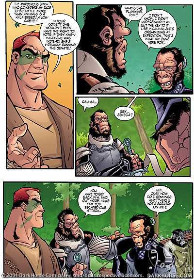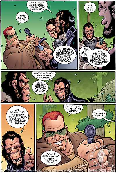 Taking place after astronaut Leo Davidson's adventure on the ape world, the anti-human forces of Shiva's ape army seek to exterminate the integrated human and ape resistance led by the chimp leader, Seneca, and the human, Esau. Meanwhile, a double-agent walks a dangerous line, working for the ape army while smuggling arms and provisions to the rebels. When this agent is exposed, secrets are revealed that force both sides into a race against time for the ultimate weapon in the war...and for the chance to rule the Planet of the Apes!
