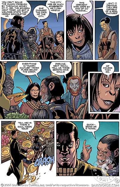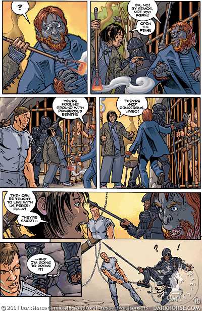 In the year 2029, astronaut/pilot Leo Davidson is in for an adventure -- and a nightmare -- unlike anything else. While conducting vital research in space on apes enhanced with human DNA, the crew of the starship Oberon investigates a strange anomaly. Pericles -- one of the genetically enhanced chimps trained as a pilot by Leo -- is given the task of investigating the odd occurrence in a prototype space pod. When Pericles disappears, Leo disregards all orders and heads out to find his friend. Once caught in the grip of the anomaly, Leo is pulled into a time and place that he could never imagine...the PLANET OF THE APES! What he experiences there is almost beyond his belief: a world where gorillas and chimps are the dominant species... a world where humans struggle to survive in the wild beneath the heel of ape rule. With the help of a sympathetic chimpanzee activist named Ari, Leo leads the effort to evade the advancing gorilla army led by the sinister Thade. And maybe, just maybe, Leo will make it back home...if he survives the war he's started.