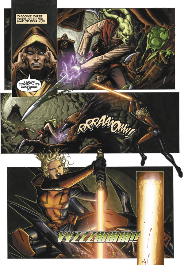 The "new" Star Wars Tales continues! Thousands of years before the fall and redemption of Anakin Skywalker, there were other Jedi who grappled with the same human emotions that overwhelmed the man who became Darth Vader. During the time of the Old Republic, three young Jedi in particular-one bearing the surname Qel Droma-traveled the Sith Homeworld of Korriban intending to finish their Order's "Great Hunt." What they find lurking in their own hearts proves more dangerous than any prey they're after, in this prequel to the popular Knights of the Old Republic video game. Also in this issue: the tragic third chapter in the story of lone Jedi Darca Nyl. Sophisticated yet easily accessible-it's Star Wars comics at their best!