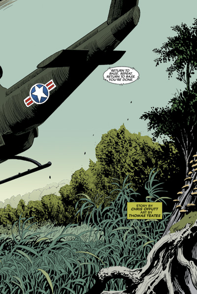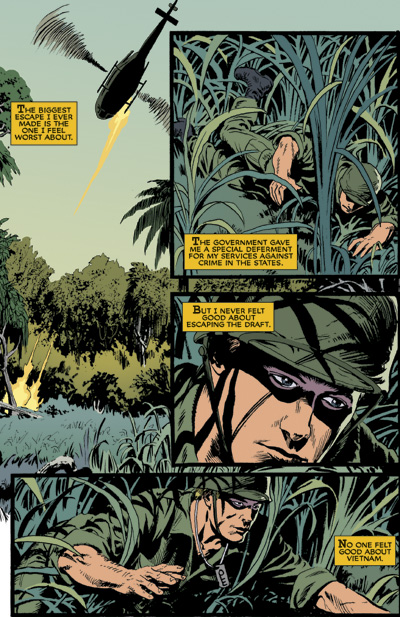 Also in this issue is the comics writing debut of Lannan and Whiting award winner Chris Offutt! Thomas Yeates (Conan) lushly illustrates this celebrated author's tale of the Escapist in Vietnam. Dan Best and Eddie Campbell (From Hell) present a fully-painted story of the Empire City 1939 World's Fair, and Howard Chaykin (American Flagg!) returns to concoct "Liberators," a fact-based tale of art looted by the Nazis, set in 1945 Paris! Norwegian indy cartoonist JASON contributes an Escapist spoof, and Steven Grant and Norm Breyfogle proffer the first Weird Date story of the anthology! One of the myriad classic titles created by Kavalier & Clay, Weird Date featured mixes of classic Alex Toth romance comics and outrageous Jack Cole crime comics of the sort that put Dr. Freddie Wertham's undies in a twist!