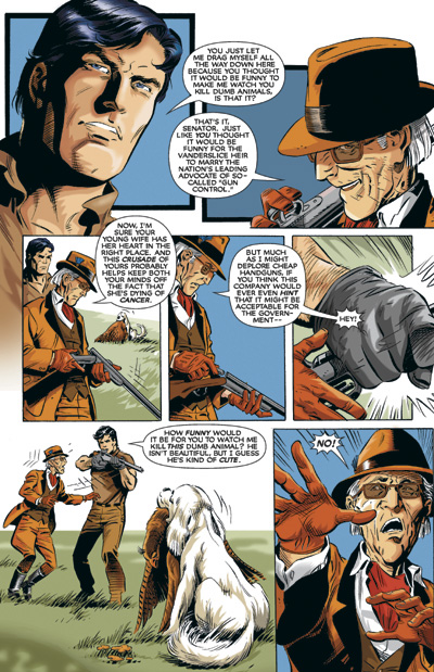 Legendary duo Kavalier and Clay created scads of fascinating characters, and Mr. Machine Gun was one of the best. A former guinea pig of Nazi bioexperimentation, the WWII hero turned to a postwar career in politics. Now, dealing with an intensely personal tragedy, Senator "Ben Vanderslice" struggles to once more gain control over his murderous right hand!