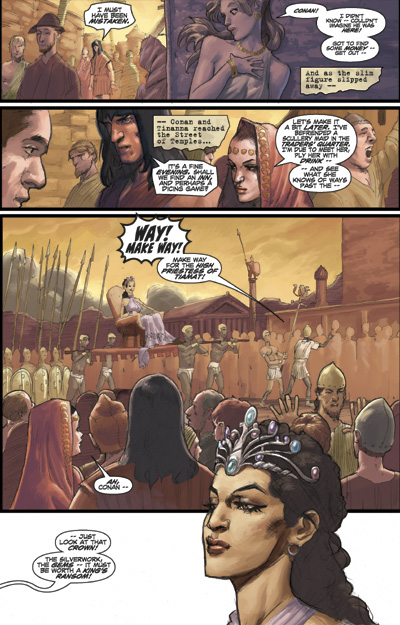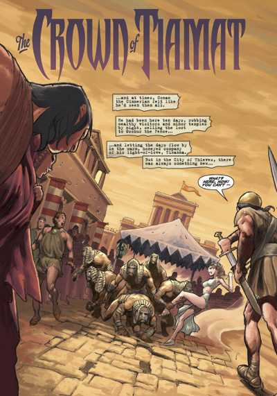 Conan unleashes an ancient evil of extraordinary power in this story that sets the stage for the adaptation of one of Robert E. Howard's most-praised Conan stories, "The Tower of the Elephant," beginning next month. Civilization continues to prove unsavory to the Cimmerian barbarian as he navigates through the teeming villainy of the City of Thieves. Determined to profit from this den of peril, Conan attempts to rob a luxuriant temple only to find himself face-to-face with an unscrupulous power bent upon its own escape. Yet, even that may not be as troubling as a woman from Conan's past who has returned to the scene, unexpectedly.