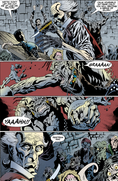Thanks to the combined distraction of Billy's entrapment and the explosive entry of yet another insane treasure hunter seeking the Golem's heart, Sproule and his companions are able to escape from their bonds, but with the monstrous villagers mindlessly obeying Dr. Frankenstein's every word, none of them can escape from the lab . . . at least, not without Billy's help. But does Billy have the courage to overcome his greatest fears and free himself in time to save the others? Does he have the generosity of heart to risk his life for a group of people he has called "freaks?"