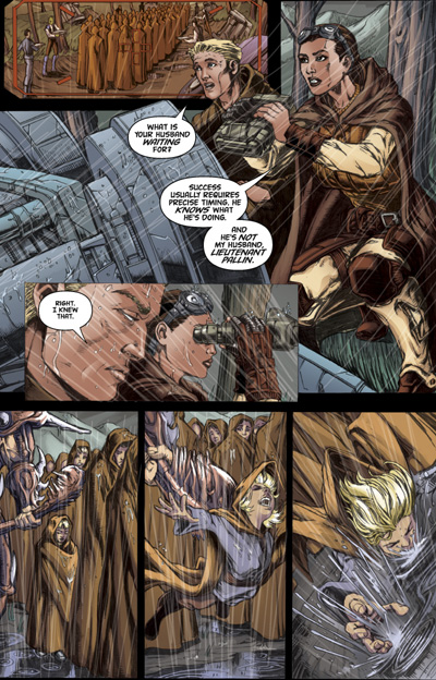 This is it-the beginning of a new direction for Star Wars Tales! Stepping away from the shorter, sillier Star Wars stories, with this issue Tales goes full-tilt toward a more exciting and sophisticated storytelling style. Cla$$war writer Rob Williams and Man of Steel artist Brandon Badeaux team up to bring you the story of Darca Nyl-a Jedi wandering the galaxy's Outer Rim hunting for revenge and hiding a deadly secret. Writer Shane McCarthy presents a rag-tag group of convicts and cutthroats flying for the Empire's glory in the feared TIE Fighter squadron called "Black Eight." And Kyle Katarn, star of the hit video game Jedi Outcast, goes toe-to-toe with the vile Yuuzhan Vong, in an action-packed tale by Nathan P. Butler and James Raiz (Tokyo Storm Warning).