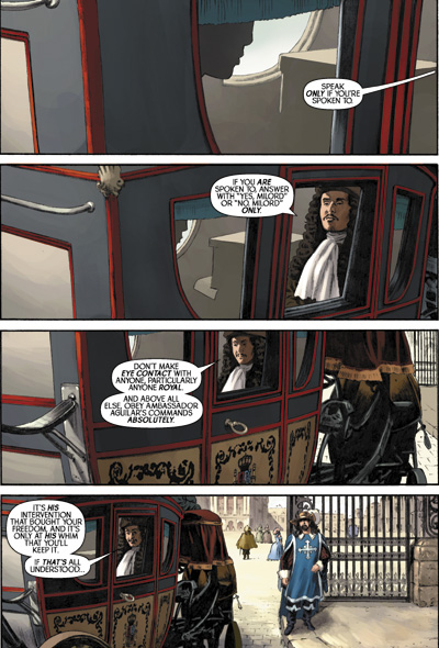 The samurai Shiro has traveled thousands of miles and fought countless battles in pursuit of his kidnapped lover Yoshiko. Now, finally, he's found her. She is imprisoned within fabulous Versailles as a plaything for France's Sun King, Louis XIV! Neither palace walls nor the blades of the king's Musketeers will keep Shiro from her side. But with a plot to assassinate the king afoot, will the lovers survive a reunion? The amazing artwork of Luke Ross brings Ron Marz's story of adventure and intrigue to stunning life!