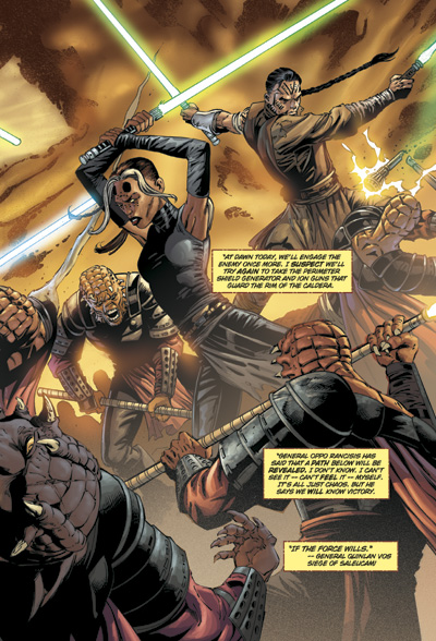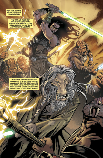 The Outer Rim Sieges have begun, and Jedi Master Oppo Rancisis leads the Republic forces in a desperate drive against a new and major Separatist threat on the planet Saleucami. Aayla Secura and her army must punch through the Separatist fleet to bring re-enforcements and much needed supplies. On the surface of the planet-and beneath it-battles rage, and betrayal simmers! The Dark Jedi Sora Bulq has allies ... and one may be among the Jedi themselves!