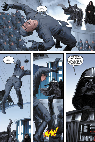Palpatine calls a meeting of his bravest, wisest, and most influential military officers in order to introduce them to his new right-hand man, Darth Vader!