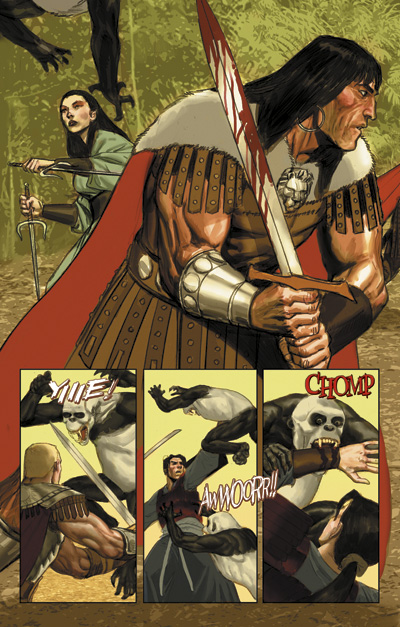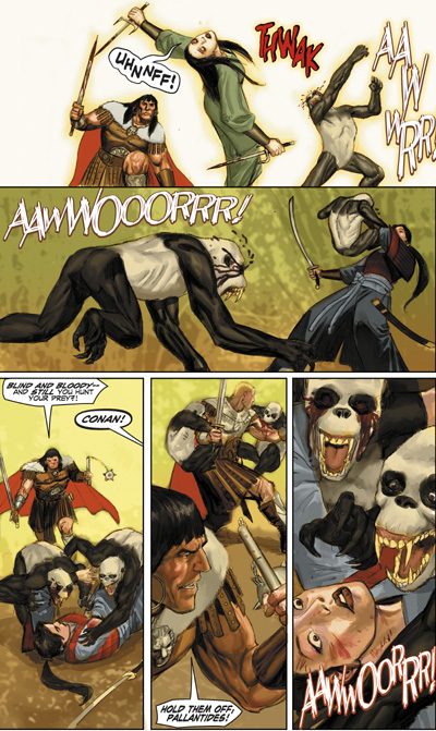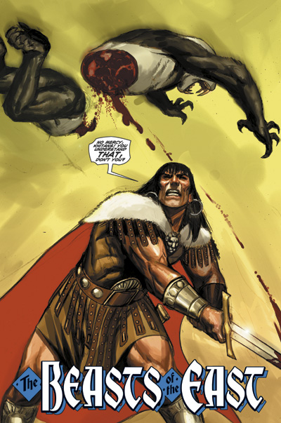 King Conan battles an onslaught of monsters unlike any he's seen in this penultimate issue of the series that pits the King of the Western world against a phantom warrior seeking to crush the Far East beneath his demonic fist. Shinzen was the greatest swordsman in the exotic kingdom of Khitai, until he became warped with dark power and stole the prized mystical blade Hakkiba. Now, Conan, his last remaining comrade, and the elite of the Khitai royal guard must stop Shinzenno matter how many twisted beasts of unspeakable horror he throws in their way. Also, don't miss the cover by comic-art marvel Pat Lee!