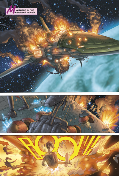 Lured into a trap aboard a drifting space wreck, Obi-Wan and Anakin become separated, and Anakin is forced to face the seemingly unkillable bounty hunter Durge. But Durge has not reckoned with Skywalker's innate power, or the young man's growing ties to the dark side. Without Obi-Wan's moderating influence, Anakin goes off on Durge!