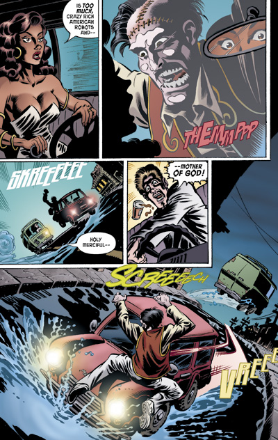 Hellboy creator Mike Mignola illustrates an eye-popping second cover to complement the one by the regular team for this final installment of Bruce Campbell's brilliantly deranged tale of an arrogant American businessman and the surly cabdriver whose brain has been transplanted inside his head. It's all out mayhem as the dual-brained Campbell goes toe-to-toe with a bar full of Russian ruffians at the beck and call of a Gypsy beauty who's trying her darnedest to plant him in an early grave. Meanwhile, Campbell's dead wife acts out with uncharacteristic bravery for someone reanimated inside a robot body. When it all comes crashing down, one thing's for certain--you'll never look at comics or organ transplants the same way again!
