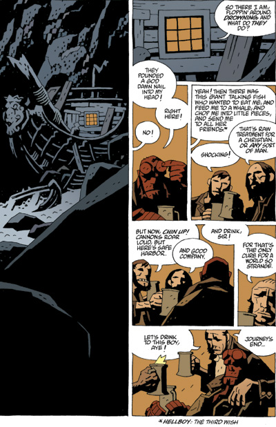 After more than two years at the bottom of the sea, Hellboy washes up on an island full of sunken ships where he is tempted by singing dead men and stupidly ignores good advice from an ancient enemy. This tale of gods and monsters offers the first revelations about one (or more) of the great secrets of Hellboy's world.