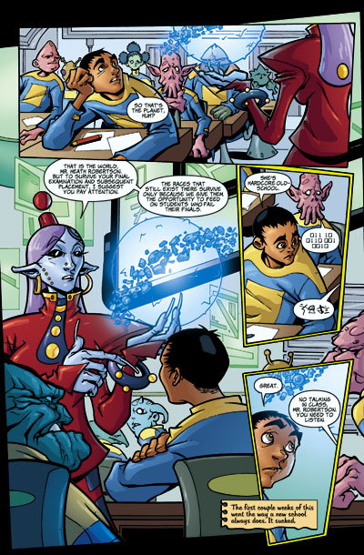 Writing to his mother from the depths of space, Heath finds himself in a school for the newest members of Galactic that follows a strict "no-tolerance" policy towards failure. His first test is to scrounge up a weapon and survive on a planet made from the junk of a thousand cultures, amidst the enraged, alien castaways from ruined worlds. The reward is a place on the fabled team, Galactic; the penalty for failure is death. Suddenly, the inner-city life Heath left behind doesn't seem so bad after all. The interplanetary crusaders who "saved" him from gang-related woes in the hard city see something in him that he himself doesn't notice yet -- the potential for heroism. But can he live up to his potential?