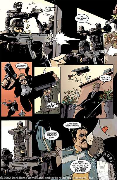 Grant City. A sordid playground of crime corruption. The push-and-pull warfare between law and disorder swings favor on a daily basis, drowning its citizens in a pool of perpetual darkness. But the most dangerous man in Grant City used to carry a badge... Dead to RightsTM tells the story of an undercover cop buried so deep in his mission, he's starting to question the direction of his loyalties. And when fugitive ex-cop Jack Slate tears a bloody path through his territory, things go rapidly to hell. While the game follows Jack Slate's search for his father's killer, this prestige format comic book supplements the plot from an outside character's perspective. Familiar faces reveal additional information about key events in the game, further broadening the scope of this explosive noir adventure. Based on the highly anticipated video game from Namco, Dead to Rights was created in close association with the original development team at Namco, led by the game's creator, Andre Emerson, Dead to Rights is written by Mike Kennedy (Lone Wolf 2100), who adapted the original script for gameplay. With cover art by Tim Bradstreet and interiors by Francisco Paronzini and Randy Emberlin, this 64-page book will also feature production drawings by the game's conceptual art team.