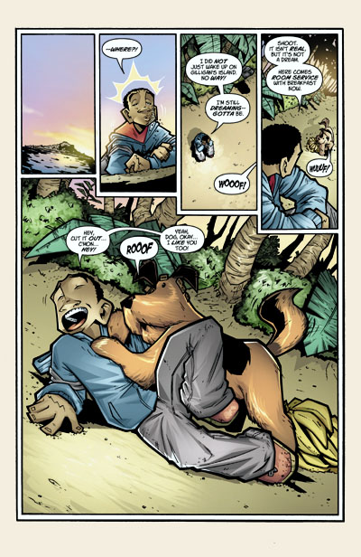 In the past hour Corey Rollins has been pursued by FBI agents, stumbled across a secret military base, been thrown into a teleportation device that has transported him to an island known as HELL, and now he's surrounded by a welcoming committee of monstrous ape men. And that's just for starters. Join Corey as he battles through Hell trying to find his missing father and find a way off of the island. Written by Brian Augustyn (Out There, Crimson, JLA) and illustrated by Todd Demong and Tim Kane. Featuring colors by Carlos Meglia!