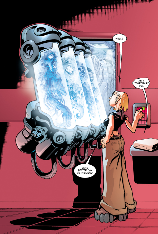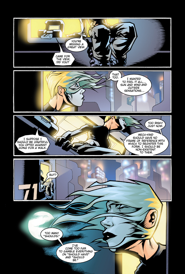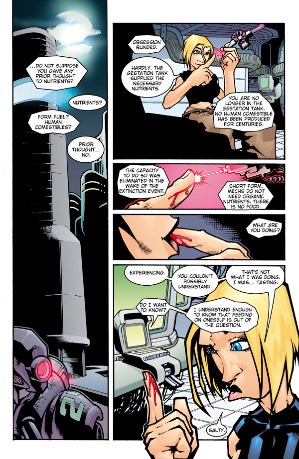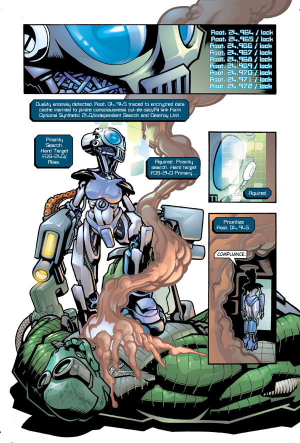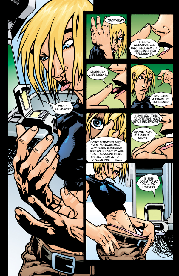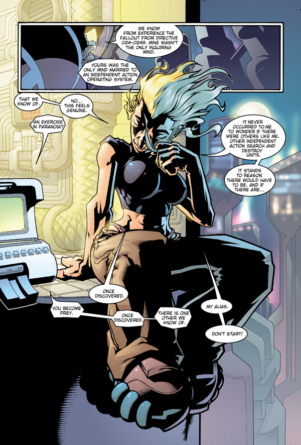 Syn undergoes a transformation the likes of which the universe has never before witnessed. Machine has become human! But it may be more than Syn was prepared for as she has now become the only human in a world filled with machines, and when her presence is discovered she may be in for the fight of her life! Written by Keith Giffen (Lobo) and illustrated by Greg Titus and Julian Washburn.