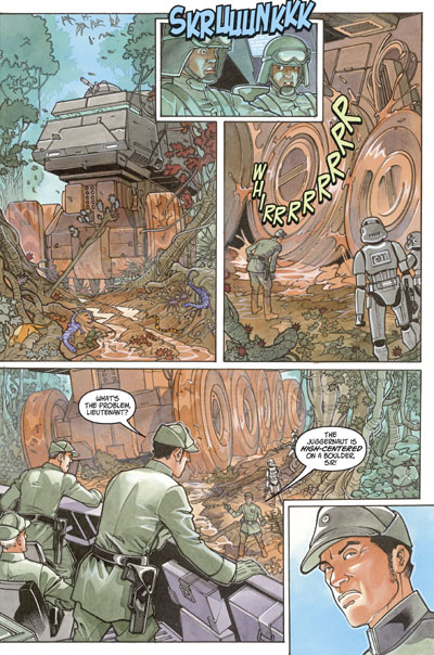 He may have washed-out as a pilot at the Imperial Academy, but Lt. Janek Sunber has found a new home in the infantry. Hoping for a post on a world where he could see some action against the Rebels, he instead finds himself on the jungle world of Maridun as part of a regiment overseeing the construction of a new base. But just when he’s resigned himself to a long, uneventful tour of duty, things heat up. The alien natives are restless, and on the hunt for human skulls! Sunber is about to learn one of the truths about the infantry: all service is sacrifice, and in the infantry that sacrifice is usually in blood!