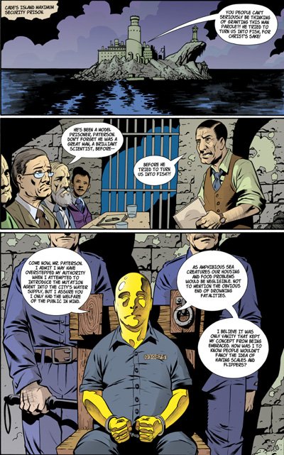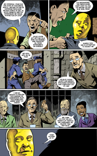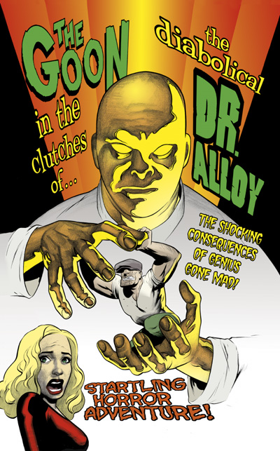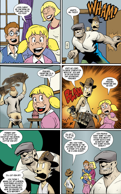 Get your daily recommended allowance of giant killer robots, mad scientists, zombies, voodoo priests, decapitations, and midgets! It's everything a growing boy needs. Be there this August as Dark Horse Comics presents issue #2 of Eric Powell's, The Goon! It's more fun than a knife to the eye! The Goon battles a family of grave robbers eager to supply the Zombie Priest with fixin's for his army of the dead. Things get bad for everyone when they wind up in Hobo Jungle: A forest where the destitute have given up train hopping for a feral life of cannibalism in the wild. Will the Goon and his enemies end up in a hobo stew?