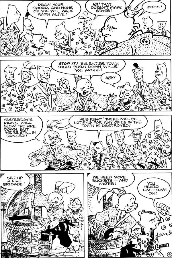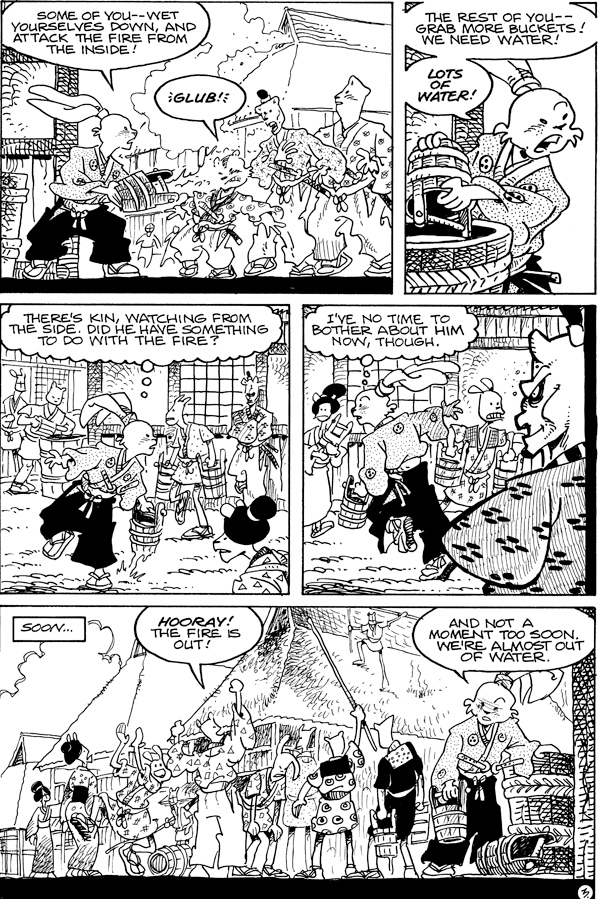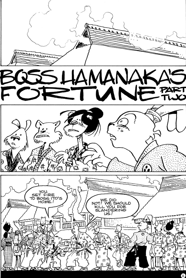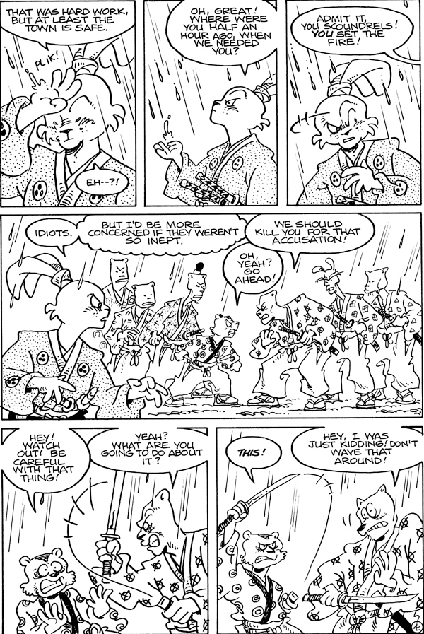All hell has broken loose in a small town after the death of crime boss Hamanaka. The two remaining factions of his gang are vying for control of the community, but it's the townspeople who are suffering the most. The tension comes to a head just as our favorite rabbit bodyguard, Usagi Yojimbo, arrives upon the scene!