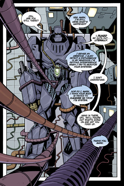 Things haven't been the same for Dr. Mark Haggerty since his all-too-human body fused to the internal workings of a hi-tech cyborg exo-suit. Now that the Cy-Bot suit has fully claimed the physical humanity of the young scientist, Mark and his wife, Nikki, are left wondering if it will also take his mind. Still, the couple faces more immediate concerns, starting with the Implementers -- the top secret militants who seek to recruit Mark for their own uses and will apparently stop at nothing to get him to comply. When Mark and Nikki decide to leave the military base and try life as civilians, Doctor Hussar and the Implementers take drastic action and turn to the darkest, most dangerous secrets of the U.S. military for help. Look out, Cy-Bot--here comes Cro-Mag!