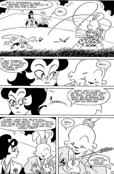 Internationally beloved creator Stan Sakai adds a thoughtful turn to his multi-Eisner Award-winning adventure series in this installment of Usagi Yojimbo. After a bittersweet victory against the Neko Ninja last issue, wandering ronin Usagi and his young companion, Jotaro, continue their travels to Kitanoji Temple, where they plan to part. When the roving pair encounters a town with an impoverished but principled samurai warrior and his son, they learn firsthand how valuable "The Pride of the Samurai" really is. Will this experience prompt Usagi to divulge a secret to his ward that would change their relationship forever?