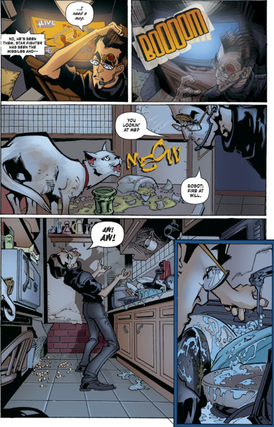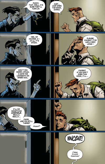 Ethan has no idea that Vincent, his roommate, is the villainous Underlord. Vincent has no clue that Ethan is the superhero called Star Fighter. In their costumed identities, they're mortal enemies, but as Ethan and Vincent they're the best of . . .wait, NO, as Ethan and Vincent they STILL hate each other's guts. Can comics' ultimate, super-powered odd couple keep their secrets secret AND learn to live together in peace? ArchEnemies is high-concept superhero action comedy drama times eleven. In our debut issue, it's a battle of wills as Ethan and Vincent try to drive each other OUT of the apartment and OFF the lease. But, in a moment of weakness, will one roommate go too far? [SPOILER ALERT: Yes. Yes, he will.]