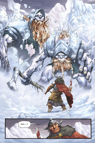 Cry For Dawn creator Joseph Michael Linsner provides another stunning cover, as Busiek and Nord adapt their first original Robert E. Howard story, “The Frost Giant’s Daughter.” In the wake of a bloody massacre, Conan comes face to face with the ultimate vision of beauty, an irresistible spirit of the northern wastes. Seduced by the nude beauty, Conan then must confront her trollish brothers in this important moment in the life of the greatest fantasy character of all time.