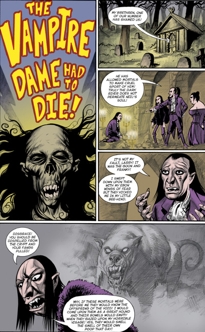 Vampires. What have they become? Effeminate fang-bearing prissy types wearing billowy shirts and velvet suits that would embarrass a gay pirate. Mostly the Goon just straps them to the hood of his car and sets them on fire. But that is not what vampires used to be. In the beginning they were restless spirits who would rise from the grave to leech the life from their still-grieving loved ones. Now one of these ancient succubi has returned with her heart set on the man they call Goon.
