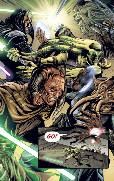Four Jedi with prices on their heads versus a space station full of bounty hunters! Really, need we say more?