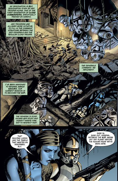 Clone Commander Bly, accompanying his Jedi-General Aayla Secura, understands the purpose and function of the armor he wears. But as he experiences the confrontation between Aayla and Quin, he witnesses the strengthsand weaknessesof the mental, emotional, and spiritual armor worn by each of the combatants.