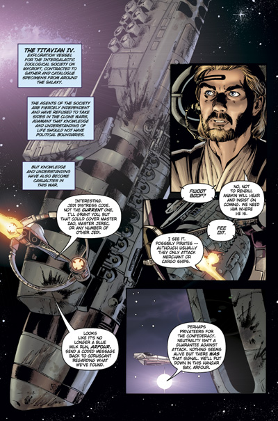 While Jedi Masters Saesee Tiin and Plo Koon fight to prevent a fleet of ships from falling into Separatist hands, Obi-Wan Kenobi discovers that the Separatists are not without dissension in their own ranks! On board the drifting hulk of a massive research ship, Obi-Wan finds himself taking sides with dark Jedi Quinlan Vos-who is wanted for the murder of a Senator-against another foe.
