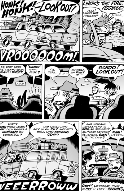 Imagine yourself in a post-apocalyptic world, where all the creature comforts that you've spent an entire lifetime taking for granted were suddenly gone for good. How do you see yourself reacting to such a situation? Would you "suck it up" and be stoically content? Or would you spend most of the time cursing your fate? We all like to picture ourselves as the former, though the latter is probably a more accurate portrayal - and that's exactly what our "hero" is like in Peter Bagge's new miniseries.