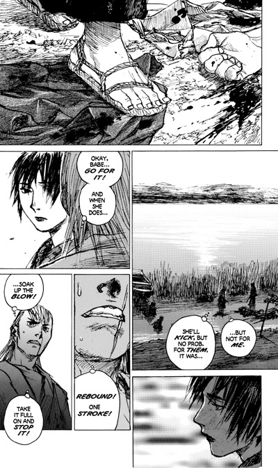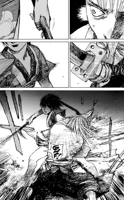 Stunned by conflicting emotions and indecision, Rin watches as the revenge-mad Iriya confronts Makie, the skilled angel of death. Iriya's seen what Makie can do, but with Anotsu finally within his sights, a bloody battle is unavoidable. Nearby, Magatsu and Manji cross swords with the remaining Shingyötö-ryü swordsmen. Magatsu, still recovering from his last terrible fight, tries to hold his ground against one of the Shingyötö-ryü clan's most honorable students, while Manji, eager to finally be reunited with Rin, hopes to send a few more opponents to the afterlife. As his latest dogfight gets messier, Hiroaki Samura continues to reinvent the bushidö grudge match by mixing elements of classic samurai tales and epic Western films with modern punk rock sensibilities.