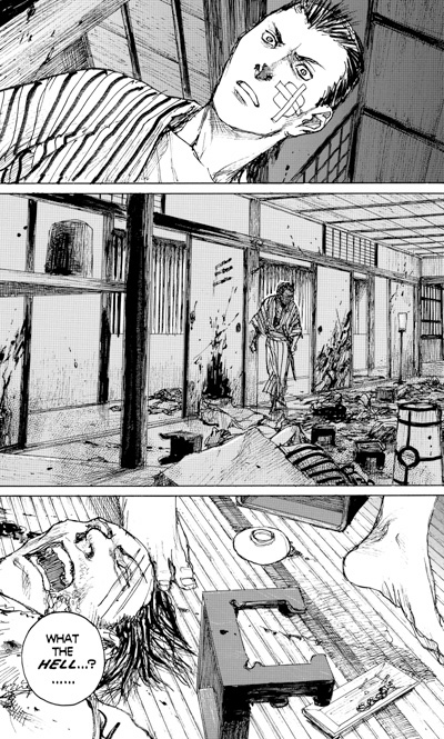 Magatsu, licking his wounds after last issue's bloody showdown, plays samurai detective after he journeys to the site of an Ittö-ryu massacre. In a weird turnaround, it's a batch of new Ittö-ryu warriors who are massacred! Crossbow expert Hyakurin is also convalescing, under Giichi's protection while she slowly becomes battle-ready. A heartbreaking conversation provides some insight into Giichi's character, and the ever-present Blade cliffhanger leaves us wondering about Hyakurin's future. Gracing this issue are two stellar pinups by rising comic book stars Jonathan and Joshua Luna!