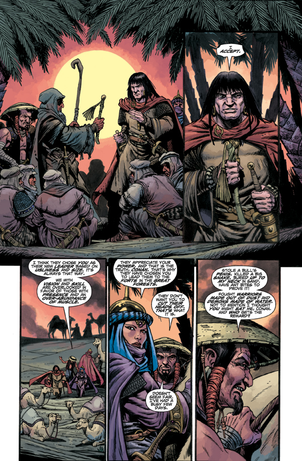 Out of the burning desert and into the biting forest, Conan travels at the advice of a nomadic tribe with the knowledge of how to use his hard-won treasures to unlock the way to a much grander prize. Yet within the wooded darkness hides a grave and bloody threat. Into the stinking bowels of the earth Conan and his party will be driven, where guardians who were once men protect an ancient and powerful secret.