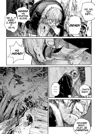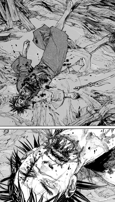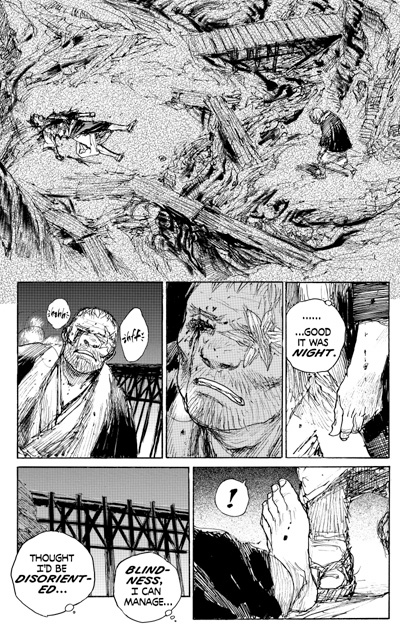 The winner of last issue's brutal dogfight between Giichi and Magatsu is revealed! Also, Manji fights for his life after being blinded by a tenacious new foe. Facing an enemy armed with kessen-satsu, the only poison known to damage his immortal blood, Manji is vulnerable, falling apart, and swinging in the dark! Will the vindictive Itto-ryü noose finally close in around Manji's neck? Fans of Hiroaki Samura's entertaining, colorful characters, complex grudge matches, and beautifully brutal swordfights will be delighted with this hard-hitting "Trickster" finale!