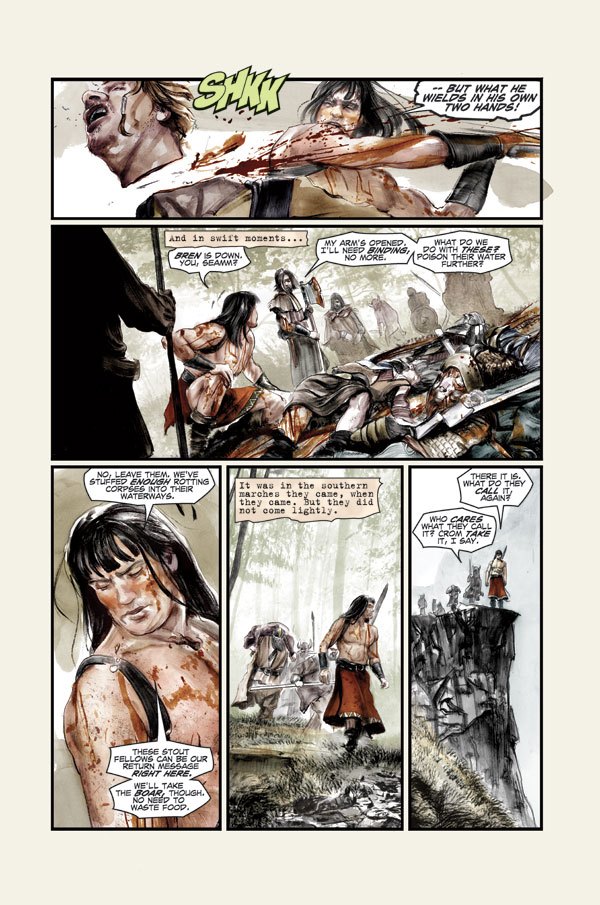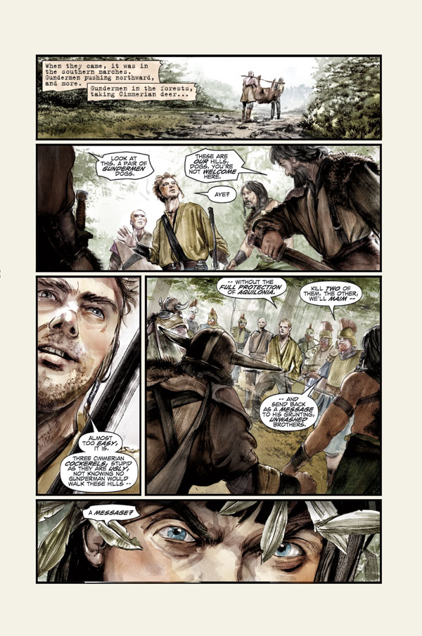 The rising storm continues to swell in this new chapter of "Born on the Battlefield." As the fist of Aquilonia tightens around Cimmeria's neck, the tribes have laid siege to the fort of Venarium in a desperate bid to protect their homeland from the encroaching empire.