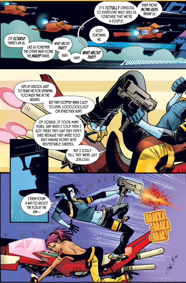 What do you get when you mix two down-and-out space-idiots, an angry space-sexpot, a priceless space-idol, and a herd of murderous, revenge-seeking space-zealots? How would we know--we asked you! See Quinn and Krunk try to entertain the trigger-happy 3-Dog and his faithful cohorts with their butt-clenching tale of high adventure. See Quinn finally sort out his relationship with the irresistible Neoki with the simple aid of a breaching bomb. See Krunk tackle the awesome task of figuring out what his mom wants for Mother's Day (what do you get a lady who wears a welding mask to the hair salon?), but figures out how to cure his insomnia--with a brick!