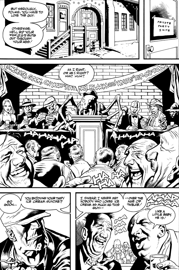 The first issue brought you the stylings of actor/comedian Patton Oswalt teamed with the legendary Mike Ploog. The second issue follows suit, teaming comedian Brian Posehn (also from Comedy Central's Comedians of Comedy and Mr. Show) with hotshot horror artist and rising-star Tony Moore (The Walking Dead, The Exterminators, Fear Agent) But that's not all! This issue also brings you a hilarious Dean Martin-style celebrity roast of the Goon, written by B.P.R.D.'s own John Arcudi with the sleek and edgy line-work of the great Kevin Nowlan, also a brilliantly dark and funny short from the mind of Hilary Barta. Meanwhile Powell, Sniegoski, and Farmer bring us part two of their three-part serial "Peg Leg Full of Heaven" featuring the Little Unholy Bastards.