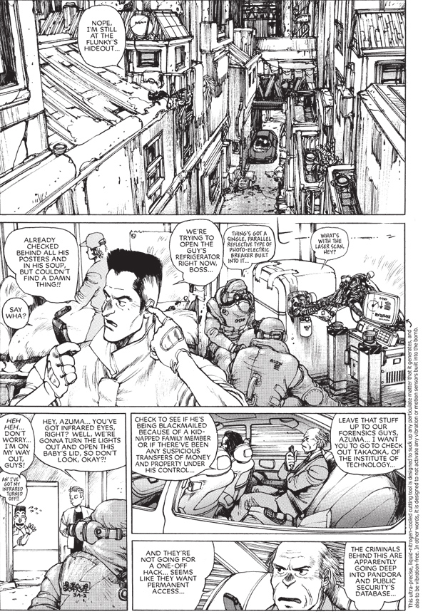 How do you keep a dead man from being murdered? Business bigwig Hayasaka might be dead, but he keeps turning up walking and talking, and Section 9 agents need to find out whether he's being remotely "puppeted" and whether those pulling the strings-like the mysterious Takoaka of the Institute of Technology-are the same people trying to control access to Pandora, a vast digital treasure trove of information of the most sensitive-and dangerous-nature.