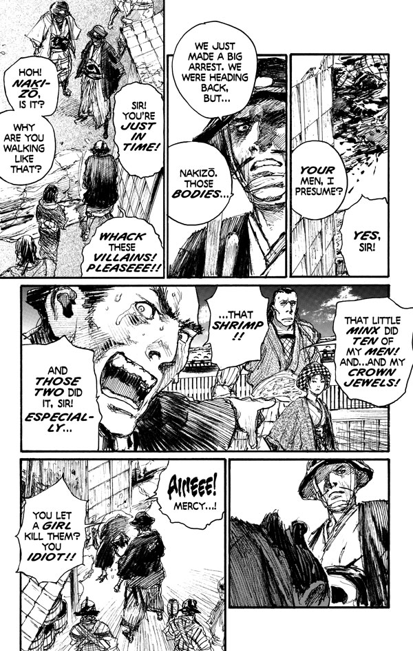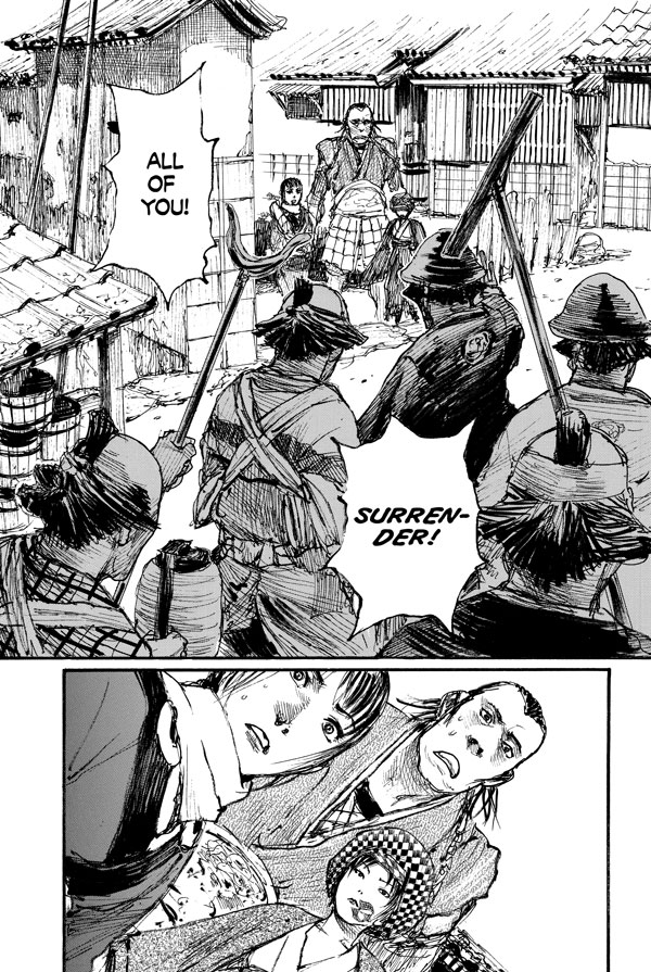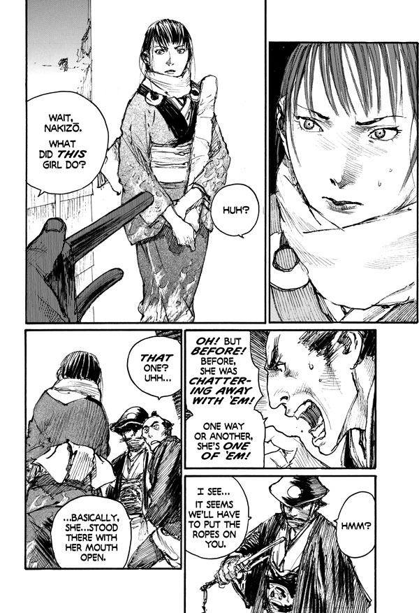 It's almost funny, how Döa, the Ittö-ryü sparkplug, so brashly hurls herself into trouble. She's in some serious danger now, though, and Edo's angry police force has her and her friends cornered and outnumbered. With dexterous Döa swinging her daggers and Isaku showing off his heavy-handed fighting style, Rin is aghast, caught up in a senseless battle. Meanwhile, deranged Doc Burando stews in a jail cell, having failed his master too many times. However, that doesn't mean that his twisted mind will stop thinking about Manji and the mysterious kessen-chu bloodworms that grant immortality to their hosts. This issue also features Stan Shaw's final back cover "Seasons" illustration, which links up to issues 117 through 119 to complete a gorgeous color quadtych image!