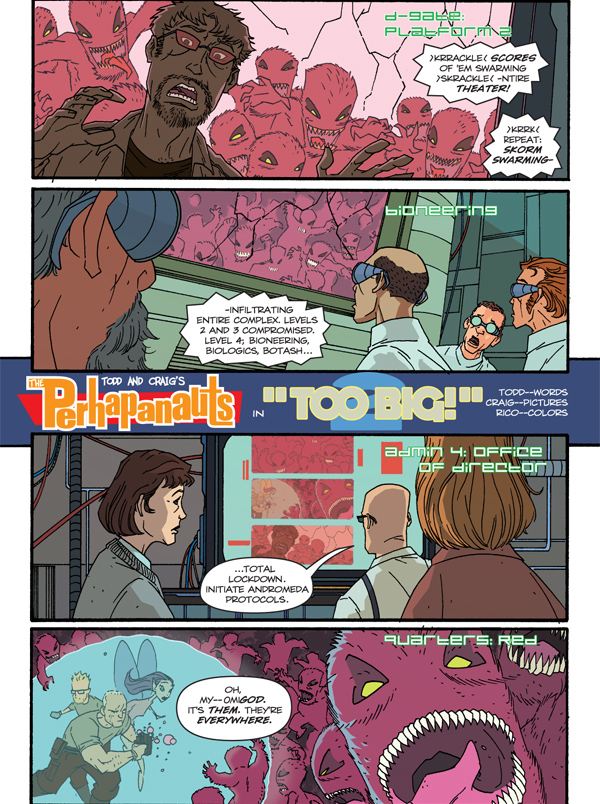 They're BACK! Still glowing from the heat of their first mind-numbing miniseries, those prowlers of the paranormal--The PERHAPANAUTS--are back to confront more creepy cryptozoological creatures and extradimensional entities! (No, the fact that the team is mostly made up of the same mythic monsters isn't lost on us . . .)
