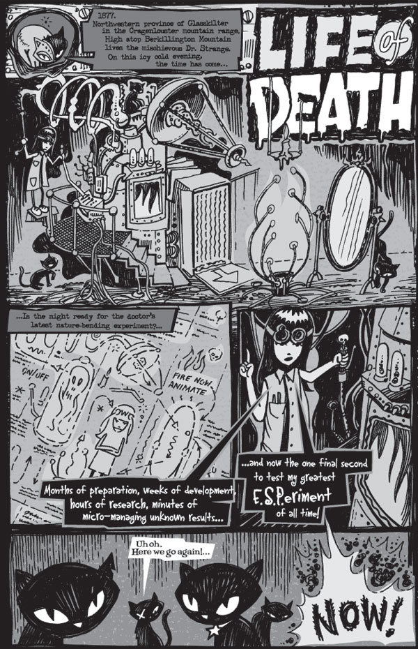 . . . and in the end, everybody DIES! Actually, not just in the end-they also die in the beginning and in the middle, and in all the pages in between. This is the Death issue, after all, and this is Emily the Strange we're talking about-the black-haired girl from the underground who's taking the world by storm. Emily isn't afraid of much, and this is the issue where she proves that by going face-to-face with death itself. Now she's dying to tell you all about it.