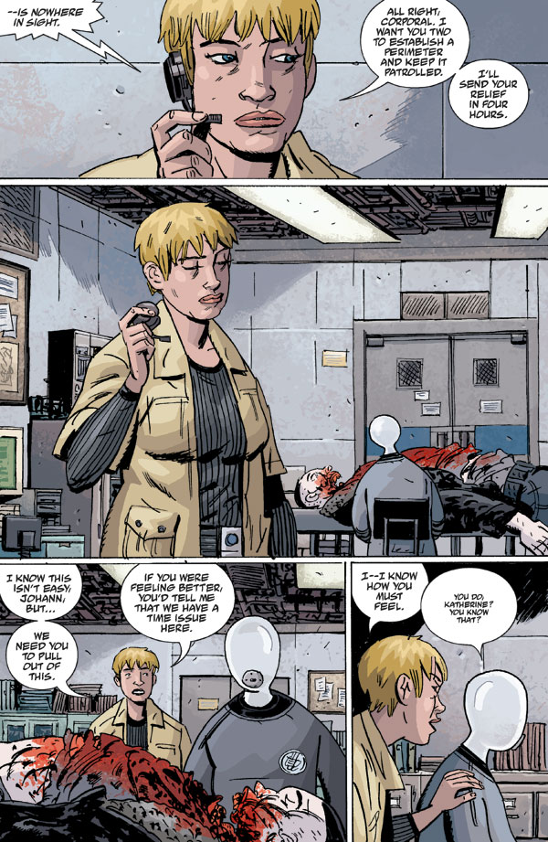 The monsters have disappeared, leaving a wake of dead bodies and unanswered questions in B.P.R.D.: Killing Ground's final issue. Kate and Johann hope to get some answers from the people who hold the key to the recent murders: the victims.